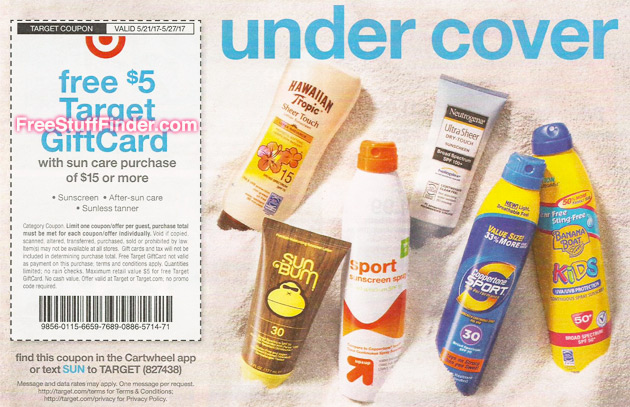 Free $5 Target Gift Card w/ $15 Sun Care Purchase Target Coupon